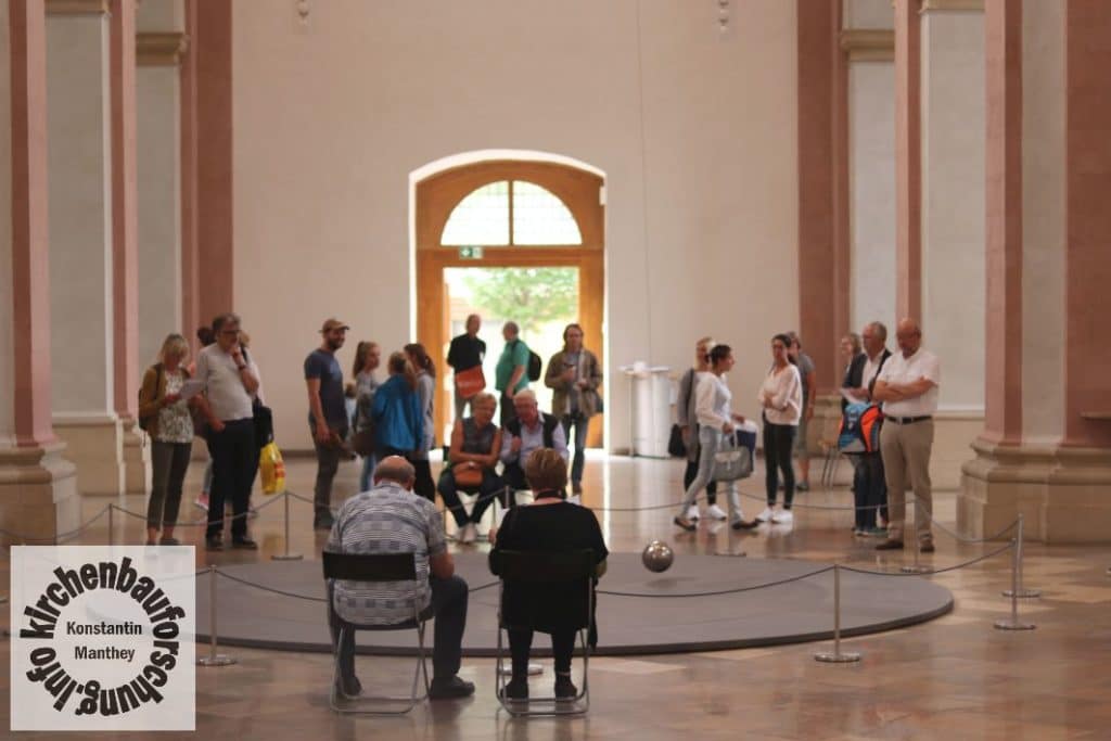 Schließlich waren wir in der 1938 errichteten Dreifaltigkeitskirche am Rande der Innenstadt. In diesem monumentalen Gebäude, das an die Bauten von Dominikus Böhm anschließt, sind nun kleine Wohnungen für sozial benachteiligte Menschen und Büros von Vereinen untergekommen. Ein Beispiel für (Nach-/ Um-)Nutzung von Kirchengebäuden.