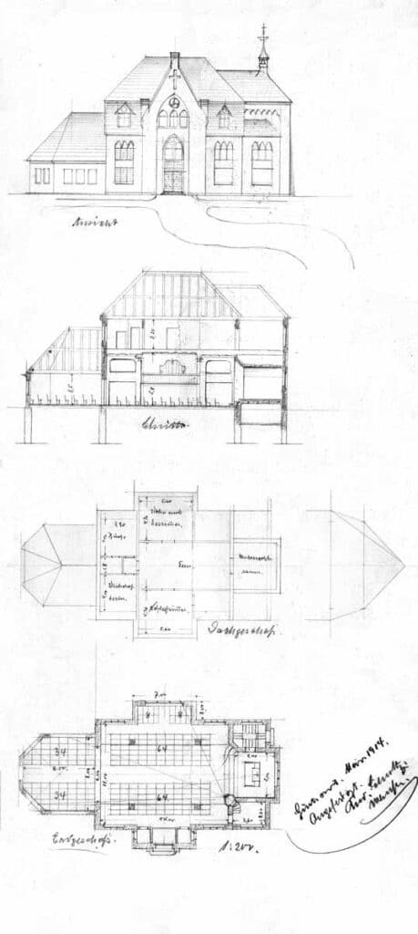 Kaum gab es eine feste Gemeindestruktur kam das Kirchbauprojekt wieder auf. Der Baumeister und Katholik Anton Berger lieferte verschiedene Vorentwürfe, schließlich kam 1928 eine Firma mit dem Architekten Paul Korff (1875-1945) aus Laage zustande. Diese sollte den Kirchenbau planen und das Bauvorhaben leiten. Mit Korff gewann man einen erfahrenen Architekten, der vor allem öffentliche Bauten und Wohnhäuser projektierte.