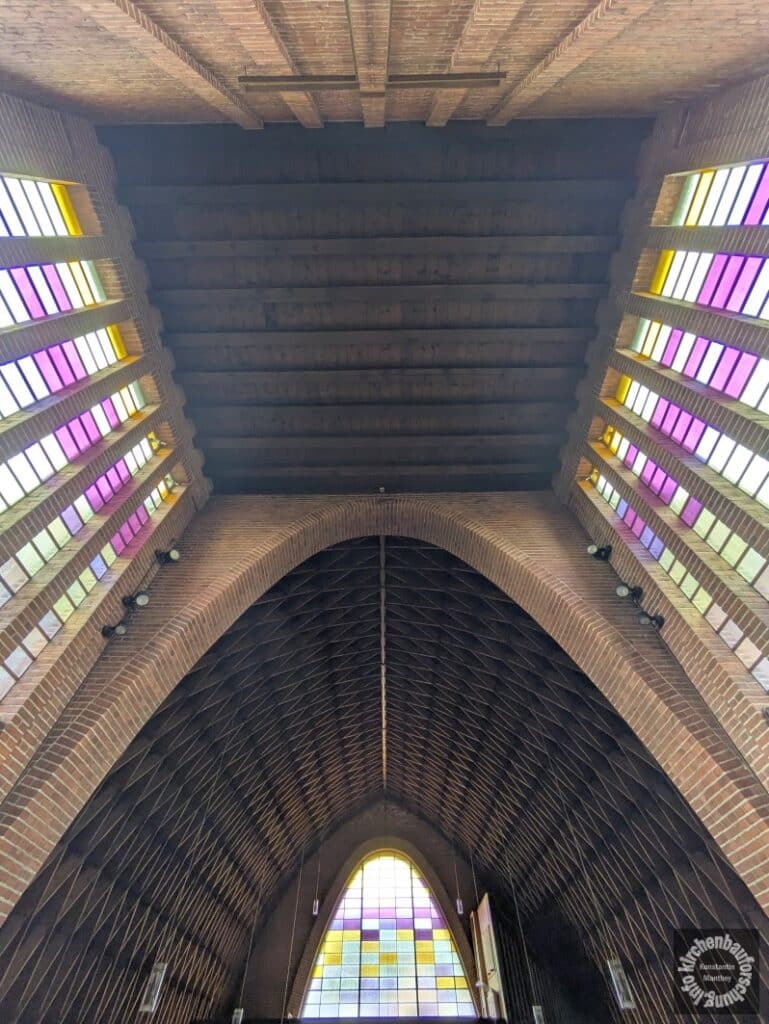 Durch den seitlichen Zugang fällt die besondere Dachform auf. Es handelt sich um eine Lamellendach der Zollinger Bauart. Der Merseburger Stadtbaurat Friedrich Zollinger, hatte seine Erfindung 1921 patentieren lassen. Somit stand eine günstige Bedachung im Baukastensystem zur Verfügung. Jedoch gab es daran auch Kritik, da die billige Grundform eine sehr raumprägende Form und Deckenansicht mit sich brachte. Zudem gab es Probleme beim Aufbau durch unerfahrene Firmen. Weswegen bis auf eine Kirche im Bistum Berlin, in Gollnow, Ostbrandenburg, dort kein solcher Bau entstand. Carl Kühn ging sogar so weit, eigene gleichgünstige Dachformen dem entgegenzusetzen. Zwar war man beim Bonifatiusverein vom Zollinger-Lamellendach für zu fördernde Diasporakirche überzeugt, jedoch ließ man die Berliner gewähren. Bis schließlich in der Zeit des Nationalsozialismus solche modernen Formen nicht mehr gebaut werden konnten.