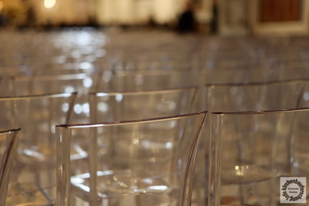 Weil dort bspw. Möbel übernommen wurden oder handelsübliche Stühle die Reihen ergänzen. Ein aktuelles Beispiel sind die Stühle mit Kniebank, nach einem Entwurf von Leo Zogmayer in der Sankt-Hedwigs-Kathedrale Berlin. Dort hatten jedoch auch im Vorgängerbau extra neu gestaltete Bänke gestanden, diese sollen auf Hans Schwippert zurückgehen und sind heute eingelagert oder weitergegeben.
