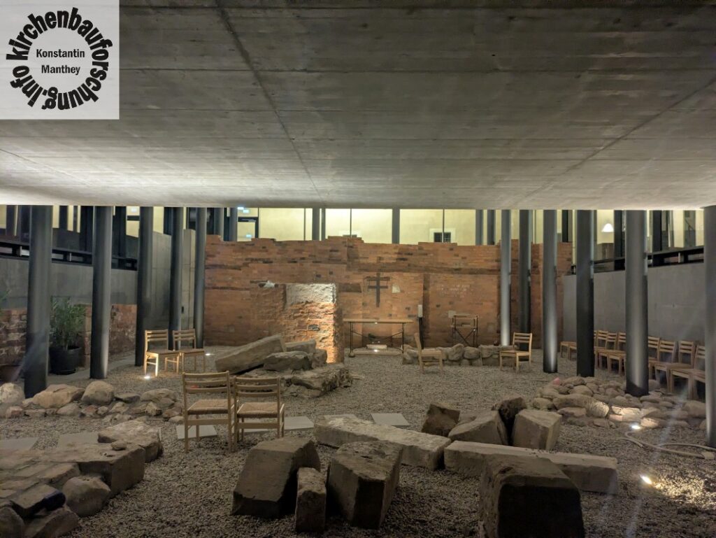 Eine Kapelle in Ruinen gibt es vielleicht ab und an. Z.B. wenn man in einer heruntergekommenen Kirche einen Andachtsort einrichtet oder aber wenn ein wüster Ort für einen Gottesdienst genutzt wird. Dass man in einer Ausgrabung einen Gebetsraum einrichtet ist nicht alltäglich. Das einzige Beispiel, was mit einfällt ist die Kapelle Madonna in den Trümmern von Gottfried Böhm (1950). Diese befindet sich heute im Komplex des Museum Kolumba in Köln. Auf einem Schauweg über Trümmer und Ausgrabungen gelangt man zu einem eigenständigen Kapellenraum.