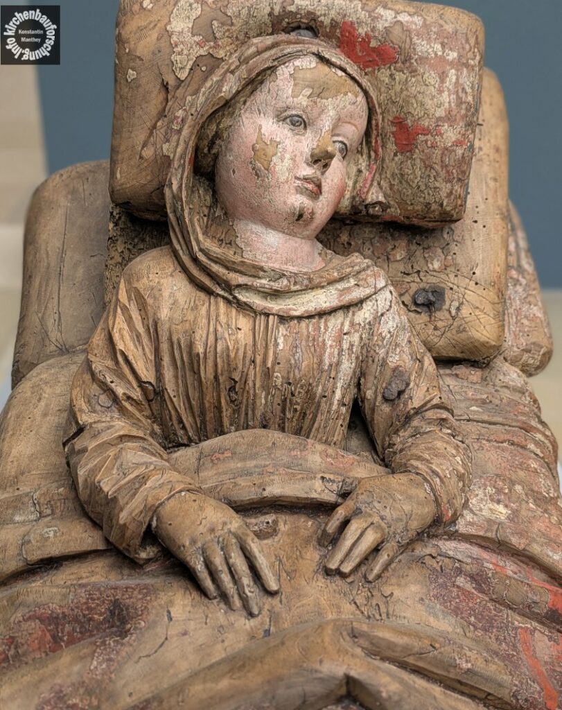 Diese Darstellung der Maria im Wochenbett fiel mir bei einem zügigen Durchgang durch das Germanische Nationalmuseum in Nürnberg auf. Ich hatte so etwas noch nicht gesehen. Dabei freute mich der Anblick sehr. Wieder eine neue Kuriosität der christlichen Kunst. Außerdem ein wunderbares Fundstück spätmittelalterlicher Frömmigkeitsformen. Welche zudem durchaus ernstzunehmende Glaubenszeugnisse mit Realitätsgehalt sind.