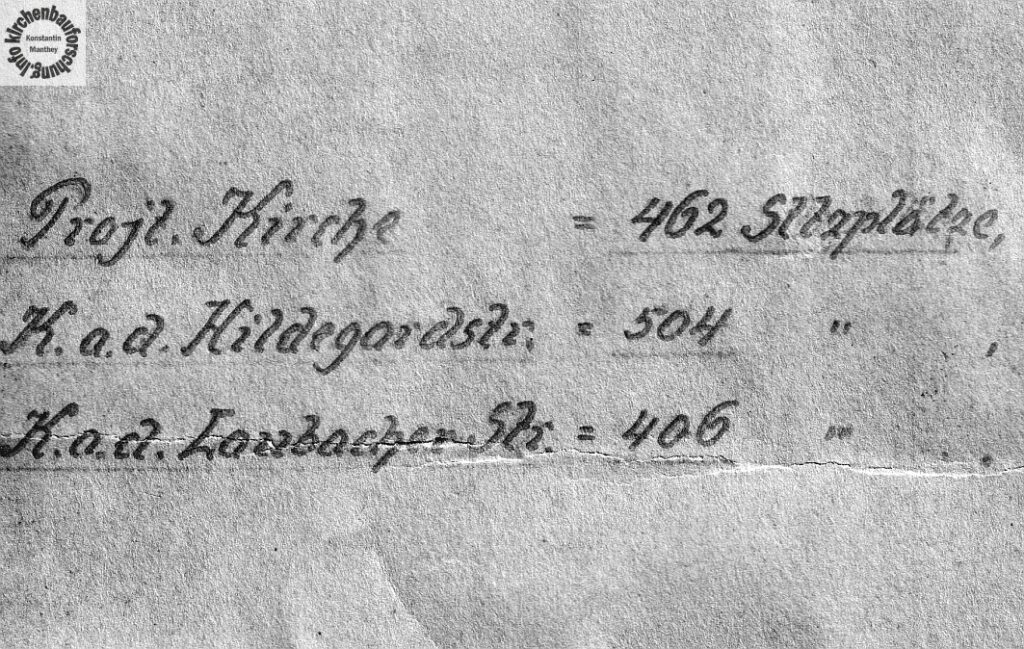 Weiterhin ist es auffällig, dass der Architekt die 462 Sitze mit zwei weiteren katholische Kirchen verglich. Diese waren die Kirche Heilig Kreuz in der Hildegardstraßen und die Kirche St. Marien am Bergheimer Platz. Gut möglich, dass dies eine Anforderung der Auftraggeber war. Unter den drei Kirche in der Umgebung wäre diese Projekt das mit dem meisten Plätzen geworden. Auftraggeber war wohl die Pfarrei St. Ludwig in Wilmersdorf, übrigens ebenfalls auf einem Platz gelegen.