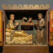Doch da war noch etwas. Ein Bild, dass ich zuvor zwar schon einige Weihnachten gesehen aber nicht bedacht habe. In unserer Pfarrkirche, St. Josef, Berlin-Weißensee von Moritz & Welz (1899), gibt es alljährlich eine Weihnachtskulisse, welche die Altarwand, der ab 1972 durch Hans Wachter umgestalteten Kirche, vollkommen bedeckt. Dieser Hintergrund bezieht die Hauptstücke Tabernakel und Kreuz mehr oder weniger mit ein und ist traditionell von der Jugend der Gemeinde gestaltet. Seit wann genau, dass weiß ich nicht. Gesehen habe ich es jedoch öfter. Aufmerksam wurde ich überhaupt nur, da ich von meinem Platz den großen, blonden Engel sah und endlich der Geistliche sich für das Wandbild bedankte.