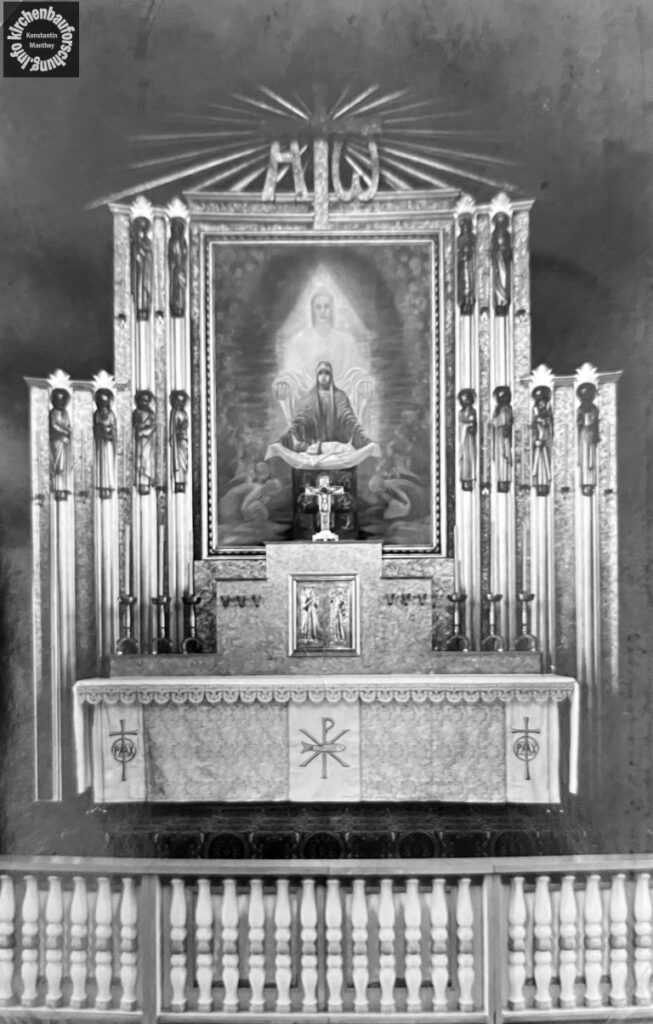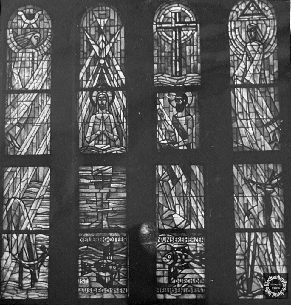 Übrigens war Hermann Bunning hier wohl als Bauleitung und Baufirma in Aktion. Die Gestaltung der Wandflächen war etwas besonderes, durchaus als modern zu bezeichnen. Ebenso ist das Bildprogramm bemerkenswert, dass sich ganz an dem wohl faszinierendsten Buch des Johannes, der Apokalypse orientiere: dem Präexistenten Wort (gr. Logos, vgl. Offb 1,1ff).
