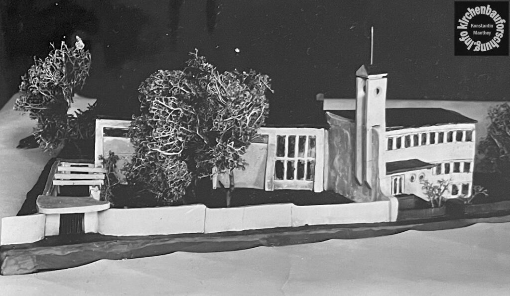Bereits 1948 gab es anscheinend Entwürfe eines Architekten Heide, erhaltene Modellfotos zeugen davon. Dabei handelt es sich um ein schlichtes Ensemble aus Gemeindebauten und Kirchensaal. Als verbindendes Element der beiden Bauteile fungierte ein kleiner Turm. Wieweit das Projekt gediehen war oder woher es kam ist unklar. Es passt jedoch zum unbedingten Willen von Pfarrer und Restgemeinde wieder eine eigene Kirche zu bekommen.