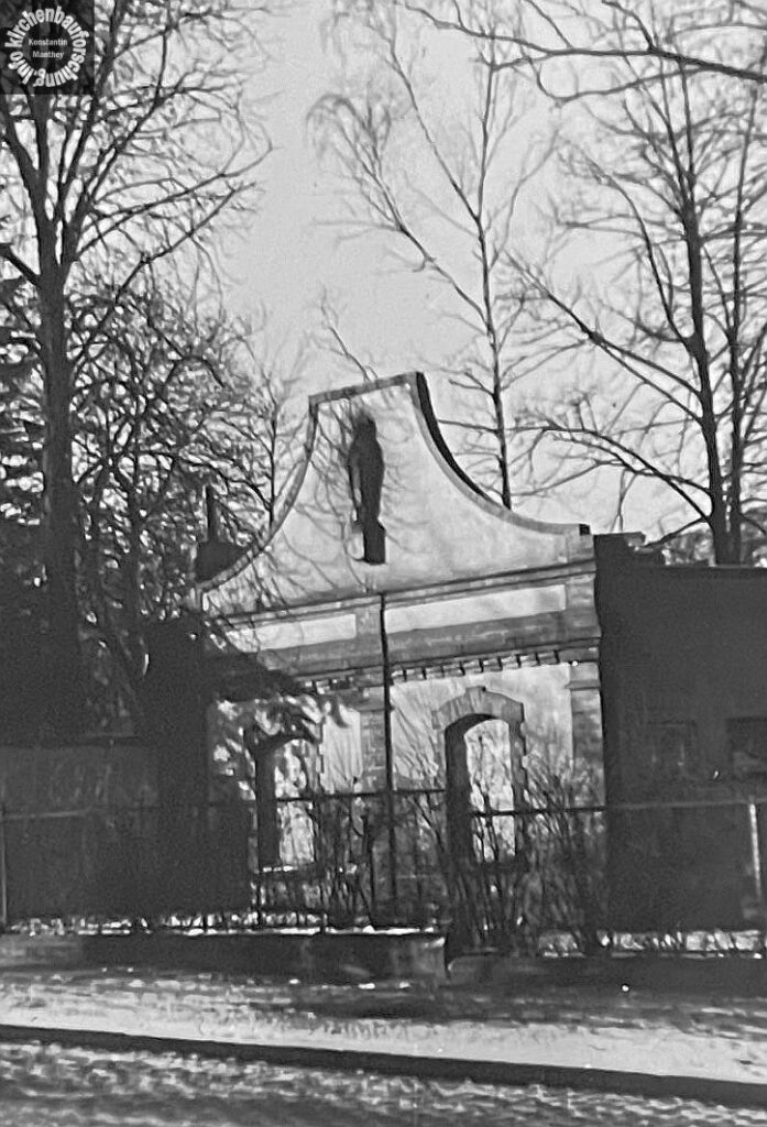 darauf zur Notkirche umgebaut und Ostern 1929 von Erzpriester Maximilian Beyer von Lichterfelde benediziert wird.