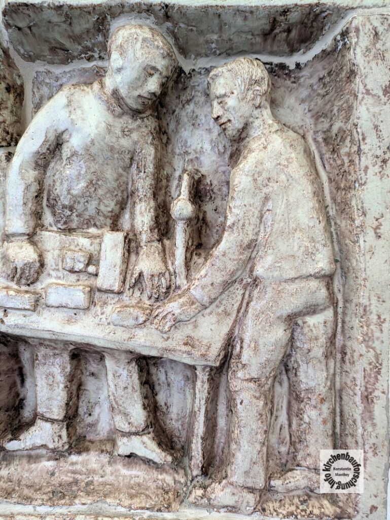 Ende Juni gab es eine Tagung zu Erich Klausener im Kronprinzenpalais. Dort im Treppenhaus auf dem Weg zum Garten finden sich Reliefs mit einer sozialistischen Geschichte Berlins. Hier ein Ausschnitt mit der Planung der neuen Mitte Berlins in der Hauptstadt der DDR. Gut zu erkennen ist der Fernsehturm.