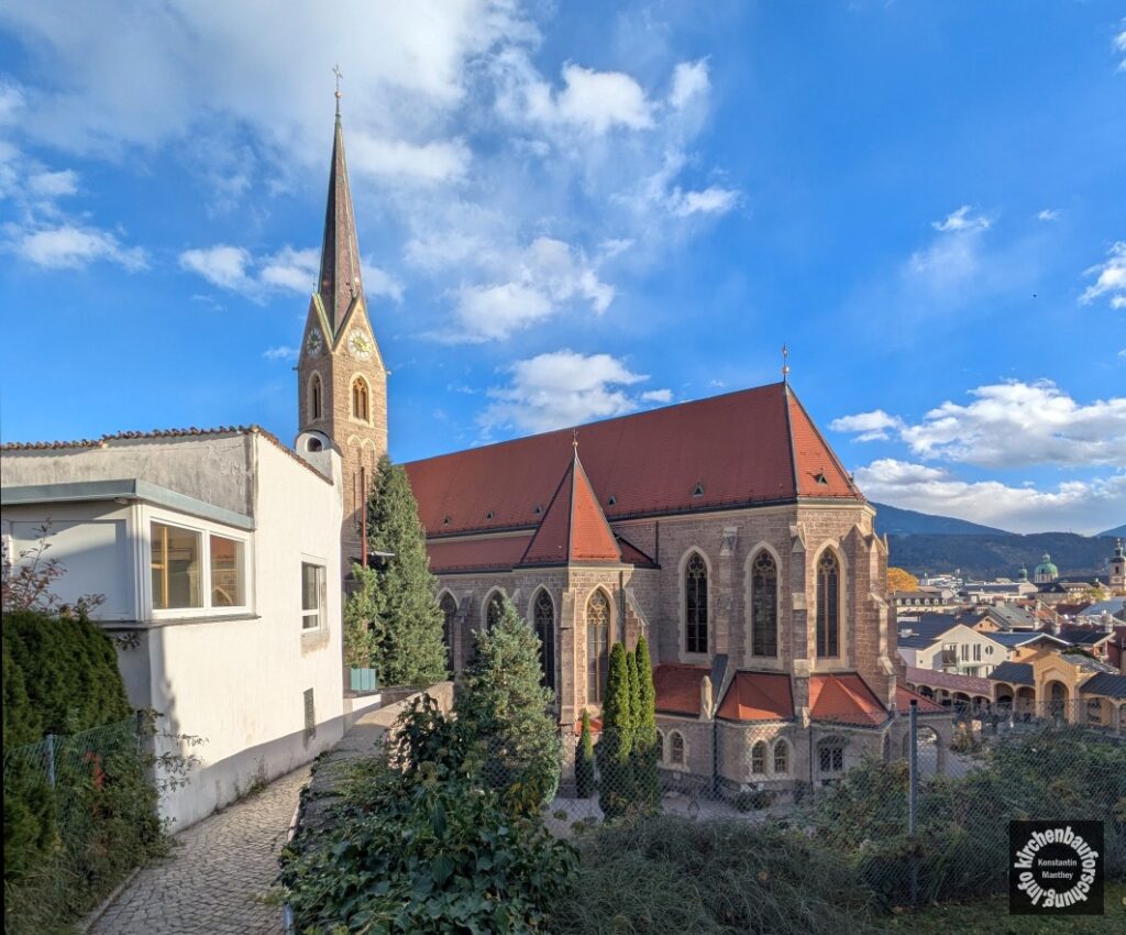 Die St.-Nikolaus-Kirche von Friedrich von Schmidt wurde 1885 fertiggestellt. Sie befindet sich im gleichnamigen Stadtteil, nördlich vom Inn. Dort ist derzeit eine Installation des Innsbrucker Künstlers Thomas Feuerstein (Jg. 1968). Der Konzeptkünstler arbeitet breit aufgestellt. Ein Themenfeld sind Arbeiten, die sich mit biologischen Abläufen befassen. In einer aktuellen Serie färbt Feuerstein vorhandene alltägliche Gegenstände in ultramarin blau ein. Die Farbe ultramarin ist ebenso als Fra Angelico Blau bekannt, da der Künstler prominent mit diesem Blauton arbeitete. Es war bis ins 19. Jahrhundert sehr teuer, da es aus Lapislazuli-Gestein gewonnen wurde. Welches wiederum zumeist aus Asien kam. Also „azurro ultramarine“ das Blau von jenseits der Meere. Erst in den 1820er und 30er Jahren entstehen verlässliche Verfahren für die synthetische Herstellung des Farbtons.