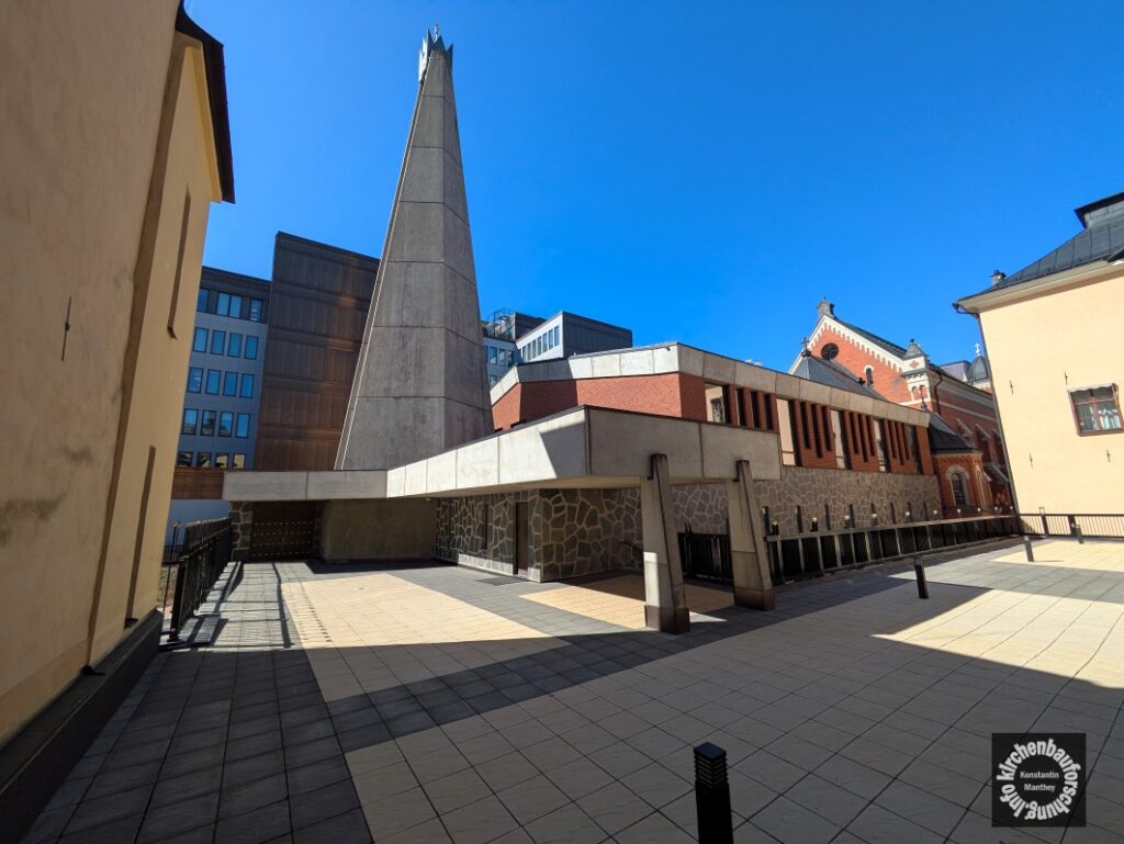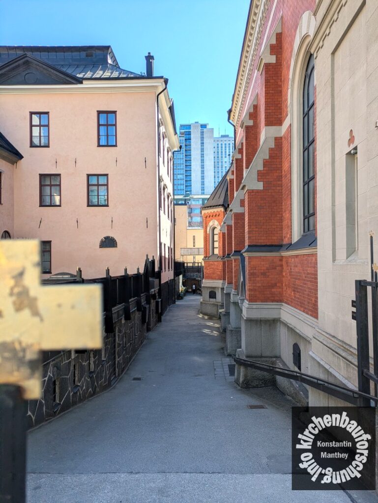Zuerst war ich wirklich etwas erschrocken. Dabei hat das Nebeneinander der Epochen sein Recht. Wie sollte ein Architekt auch in den 1980er Jahren die Neostile weiterbauen. Zudem ist der extreme Gegensatz oft das Ehrliche und durch den klaren Unterschied auch Passende. Beide Raumteile sind gleichberechtigt und erlebbar. So fiel bspw. auf, dass die üblichen Seitenaltäre im Altbau sind. Dort gab es auch viele Betende, im Neubau waren wir lange für uns. Noch eine weitere Stärke hat der Bau. Nähert man sich von Norden vom Medborgarplatsen fällt vor allem der Altbau auf, der Neubau hält sich von der historischen Schauseite zurück und entfaltet seine Wirkung von Süden her. Schließlich schätze ich diese Zeugnis des Sakralbaus der 1970/80er-Jahre, da in dieser Zeit weniger neue Kirchenräume entstanden ist das was dort in St. Erich geschaffen wurden noch einmal besonders hervorzuheben. Am besten Sie/ ihr fahrt selbst einmal dorthin und findet vielleicht noch mehr über die Kathedrale von Stockholm heraus als ich. Freue mich immer über Hinweise!